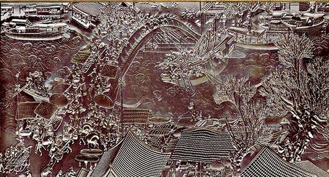 屏風(fēng)隔斷廠生產(chǎn)的銅壁畫應(yīng)用在銅制桌椅上